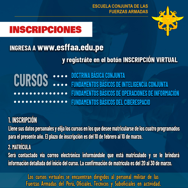 La Escuela Conjunta de las Fuerzas Armadas inició el proceso de inscripción a los cursos virtuales programados para el presente