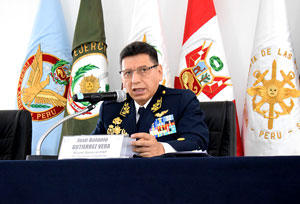 El Mayor General Gutiérrez Vera dirigió sus palabras de bienvenida citando: “Recibirlos hoy constituye un nuevo compromiso y varios retos por delante. Tareas que asumimos con entusiasmo y optimismo porque si bien nos motiva a ser los gestores del perfeccionamiento de un nuevo grupo de futuros líderes de nuestras Fuerzas Armadas, no menos importante es hacerlo en este que es considerado el centro de formación del más alto nivel dentro de la comunidad militar peruana”.