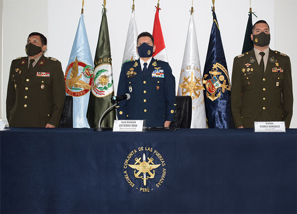 La ceremonia de inauguración del décimo sexto Programa de Comando y Estado Mayor Conjunto (XVI PCEMC) se transmitió en la mañana del miércoles 13 de enero, desde el Aula Magna de la Escuela Conjunta de las Fuerzas Armadas y fue presidida por el Director General Mayor General FAP José Gutiérrez Vera, acompañado del Subdirector General Coronel EP José Mauricio Girón y del Director Académico Coronel EP Carlos Flores González.